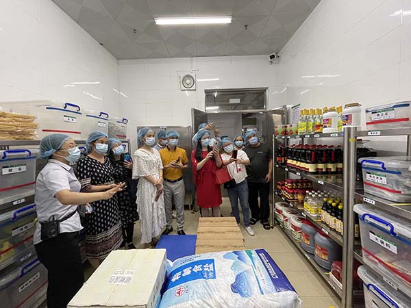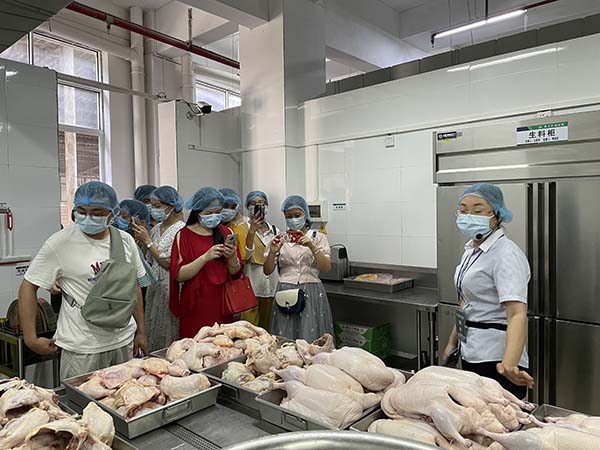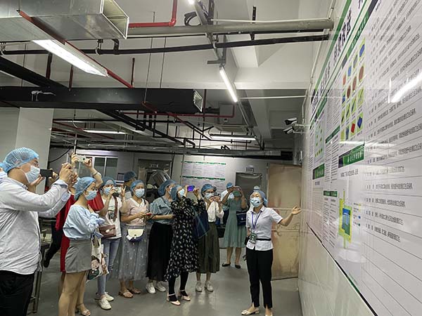 2021年05月26日下午,市場監(jiān)督管理局一行共約150人分三組到我公司開展參觀學(xué)習(xí)活動。我公司運(yùn)營監(jiān)管部成員向市場監(jiān)督管理局一行進(jìn)行現(xiàn)場講解,介紹了凈菜加工中心和秀苑餐廳QSFH管理體系運(yùn)行情況、無水廚房建設(shè)情況等。