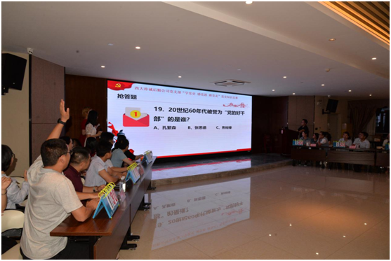 為慶祝中國共產(chǎn)黨成立100周年,持續(xù)深入推進黨史學(xué)習(xí)教育,我公司黨支部“學(xué)黨史 感黨恩 跟黨走”黨史知識競賽活動于6月6日晚順利開展。學(xué)校黨委常委、副校長劉向同志,資產(chǎn)公司黨委書記、總裁葉志青同志,資產(chǎn)公司黨委副書記、副總裁黎庶凱同志,本公司黨支部書記、總經(jīng)理孔宇同志,副總經(jīng)理趙勇杰同志等有關(guān)領(lǐng)導(dǎo)出席本次活動。