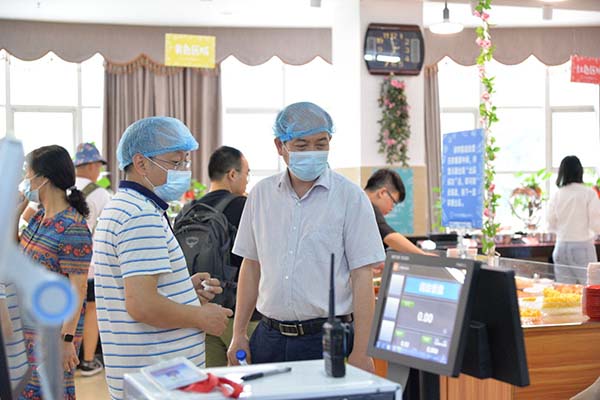 廖建輝一行首先來(lái)到我司會(huì)議室開(kāi)展座談,詳細(xì)了解我司的發(fā)展歷史、經(jīng)營(yíng)管理理念及現(xiàn)有經(jīng)營(yíng)業(yè)態(tài),深入了解我校后勤管理處與我司在有關(guān)機(jī)制上的關(guān)系。隨后,在我司總經(jīng)理孔宇、副總經(jīng)理唐亞瓊等領(lǐng)導(dǎo)的陪同下參觀了我司凈菜加工中心、秀苑餐廳、東苑餐廳、老水塔咖啡廳等地,?對(duì)我司在無(wú)水廚房、智慧餐廳、食品安全管理等方面的工作給予了充分的肯定,希望雙方能更深入交流管理經(jīng)驗(yàn),推動(dòng)共同發(fā)展。