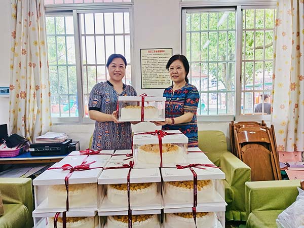 當天下午2:00,由于天氣炎熱,動物奶油容易融化,公司總經(jīng)理孔宇與副總經(jīng)理唐亞瓊及其他員工一起來到西麥坊幫忙包裝蛋糕,并快速將蛋糕運送到西大第一幼兒園和第二幼兒園,以保證蛋糕的新鮮與安全。