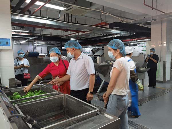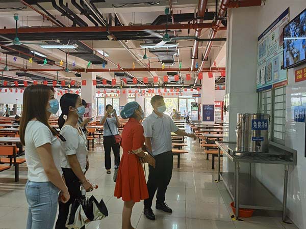 2021年6月15日上午,來自百色平果市的廣西培賢國際職業(yè)學院一行5人到我公司考察調(diào)研餐飲服務管理運行模式,在公司運營監(jiān)管部嚴壯云主任的陪同下參觀了凈菜加工中心、食品檢測室、秀苑餐廳,期間培賢學院后勤負責人黃老師等人對我公司無水廚房和秀苑餐廳自選稱重新模式表示贊許。