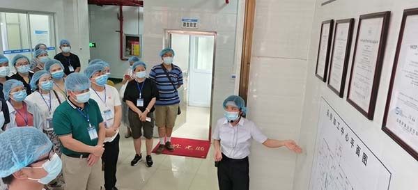 2021年6月29日下午,橫縣市場監(jiān)督管理局80人來我公司參觀交流,在運營監(jiān)管部主任嚴壯云的陪同下分別參觀了凈菜加工中心、食品檢測室、秀苑餐廳等,詳細了解了我公司無水廚房建設情況。