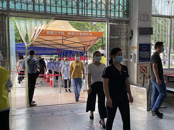 本次演練由樸誠后勤公司工作人員近百人扮演學(xué)生就餐者,在秩序維護(hù)員的引導(dǎo)下,按照規(guī)定路線、地貼位置從測溫通道進(jìn)入餐廳,設(shè)定了可能會(huì)遇到不同類型的應(yīng)急情況,并演練其對應(yīng)的正確處置方式。