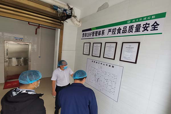 ??? 2021年10月14日下午,河池市國(guó)盛資產(chǎn)管理有限責(zé)任公司余輝副總經(jīng)理一行三人到我公司調(diào)研,公司總經(jīng)理孔宇等領(lǐng)導(dǎo)參加了座談,雙方就學(xué)校食堂、超市等方面交換了管理經(jīng)驗(yàn)。會(huì)后還參觀了我公司的凈菜加工中心、食品檢測(cè)室、秀苑餐廳、東苑餐廳、東校園超市、西麥坊、老水塔咖啡廳、萃苑餐廳等地。