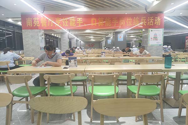 6月16月19:00,南苑第二餐廳開展口算能手崗位練兵活動,餐廳大眾伙食的全體員工參加了口算測驗。