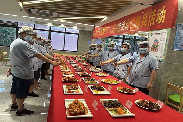 6月16月13:00,南苑第二餐廳開展烹飪能手崗位練兵活動。9名廚師參加了烹飪能手比拼,每人制作三個菜品,其中兩個固定菜品為紅燒茄子、糖醋菊花魚,另一個菜品為自定義菜品。