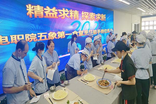 6月20月13:00,電職院五象校區(qū)第一食堂開展了烹飪能手、口算能手崗位練兵活動。餐廳全體售賣員工參加了口算測驗,7名廚師參加了烹飪比拼。