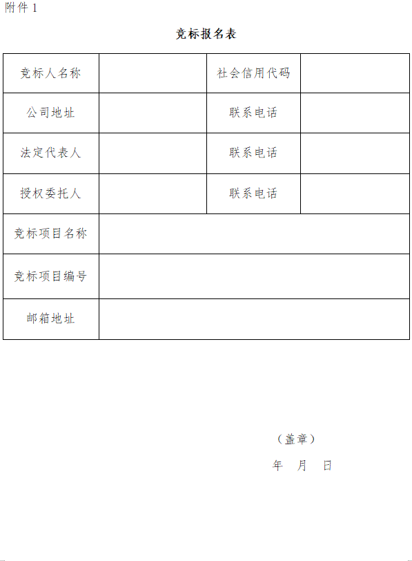 將報名材料【競標報名表(見附件)、營業(yè)執(zhí)照副本、法人身份證或委托人身份證(授權(quán)委托時)、法人代表授權(quán)委托書(授權(quán)委托時)】的清晰復印件加蓋企業(yè)印章并掃描合并為一個PDF文件,在截止時間前發(fā)送至指定郵箱,材料審核通過后會通過郵件和電話通知報名人。競標人的報名時間以招標人收到競標人報名材料的時間為準。未按照規(guī)定時間和規(guī)定要求提交報名材料的,不予受理。