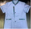 面料:主布為活性全工藝環(huán)保扎染面料、含棉量35%,花邊布為絲緞面料,黑邊為微彈貢絲錦 顏色:主布天蘭色 尺碼:M-4XL 款式:短袖襯衣、小立領、扣式門襟、雙口袋 配飾:衣領及門襟處加配約1cm黑邊,衣領、門襟、口袋及衣袖處加配絲緞花邊 |