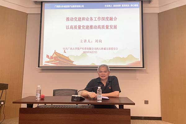 6月7日下午,校黨委常委、副校長劉向在薈萃樓3樓會議室講授題為“推動黨建和業(yè)務工作深度融合 以高質量黨建推動高質量發(fā)展”主題教育專題黨課。樸誠公司黨支部全體黨員參加學習。