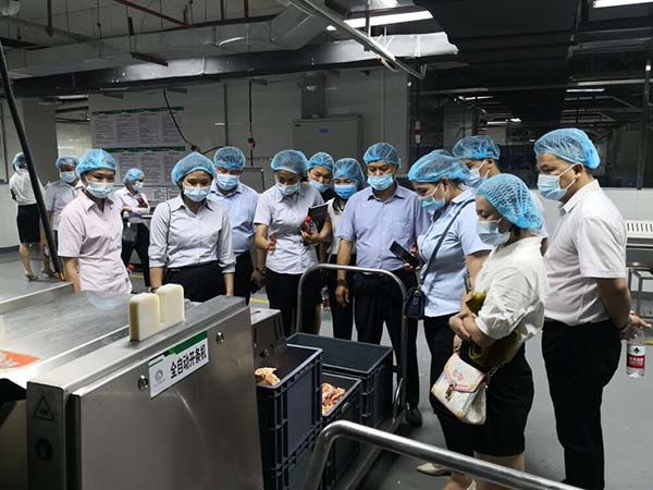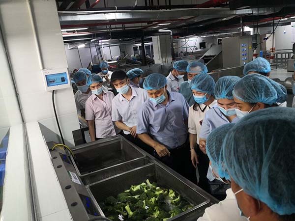 2021年5月31日下午,鮮而美餐飲公司一行17人到我公司參觀交流。在公司運營監(jiān)管部嚴壯云主任的陪同下參觀了食品檢測室、凈菜加工中心、秀苑餐廳等,并詳細了解我公司無水廚房建設(shè)情況。