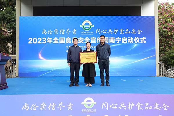 12月12日上午,2023年全國食品安全宣傳周南寧啟動儀式在青秀區(qū)新竹小區(qū)舉行,我公司作為“放心餐飲”單位代表接受南寧市創(chuàng)建國家食品安全示范城市領導小組辦公室授予的“2022年度‘放心餐飲’星級單位”榮譽牌匾。由我公司管理運營的5家校園食堂獲得星級單位分別為: