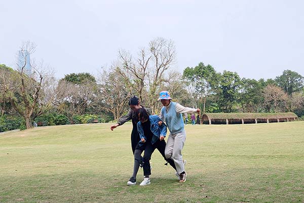 三月的青秀山,紅的、黃的、白的、紫的、藍的各種花爭奇斗艷,很是好看,大家紛紛拿起相機記錄著美麗的時刻。在踏青的同時,現(xiàn)場隨機分組,通過“三人四足”、“你來比劃我來猜”的小游戲把活動推向了高潮,大家玩得不亦悅乎。