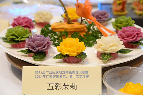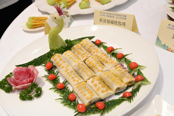 12月15日,第十二屆廣西民族地方特色美食大賽在南寧舉行,來自全區(qū)各市縣餐飲企業(yè)和職業(yè)院校選送的424個體現(xiàn)廣西桂菜四大風味及客家風味的美食品種參加了比賽。我司代表隊由東苑餐廳經(jīng)理羅照才率隊參加比賽,并斬獲團體特金獎1個、單項特金獎3個、單項金獎2個。其中:壯鄉(xiāng)粽子酥、茅魚露蝦、新派邕城紙包雞獲單項特金獎;五彩茉莉、形象玉米魚獲單項金獎。